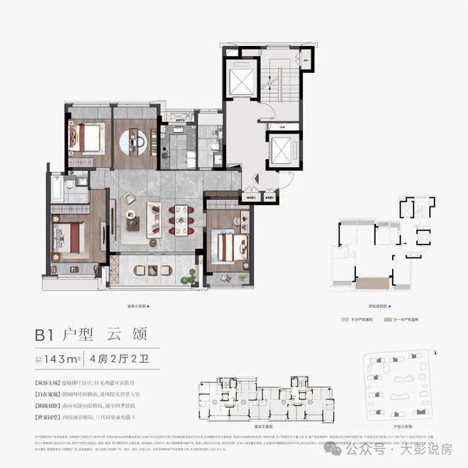 云颂 建面约143㎡户型 4房2厅2卫