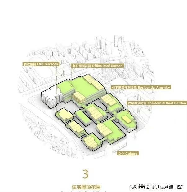 根据意向效果图,雅宾利4期预计为开放式社区设计,采用空中花园将社区立体连接在一起:项目将会采用地面抬高3层的设计,其中3层以下为商业底盘。
