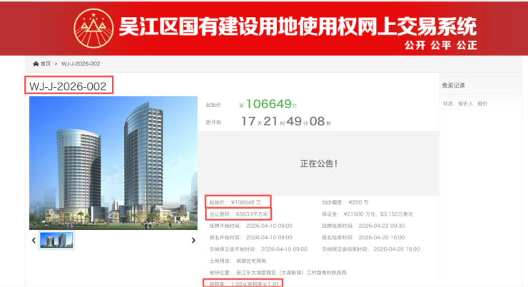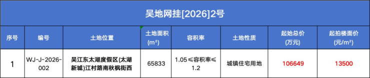 就在刚刚,吴江土地市场迎来一枚重磅炸弹!