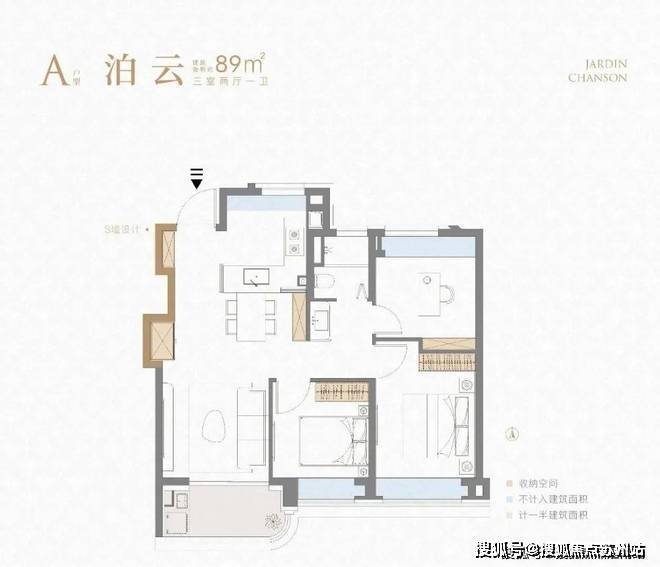 ①建面约89㎡3房2厅1卫户型: