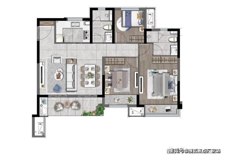 三室:81㎡、95㎡、97㎡(三房两厅,适合三口之家)