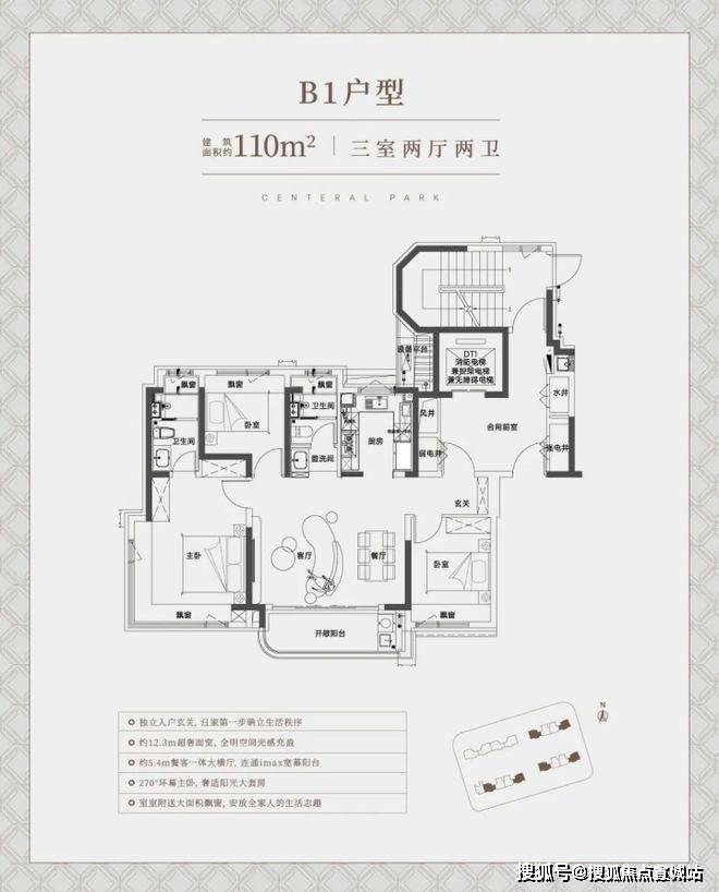建面约110㎡中间套竖厅户型,同样也是标准的南北通透飞机户型,整体室内的采光、尺度感、通风都相当出色。非常适合一家三口、年轻夫妻的全生命周期需求!中环铂樾售楼处营销中心:400-8673-567中环铂樾售楼处电话/地址☎:400-8673-567(开发商热线)