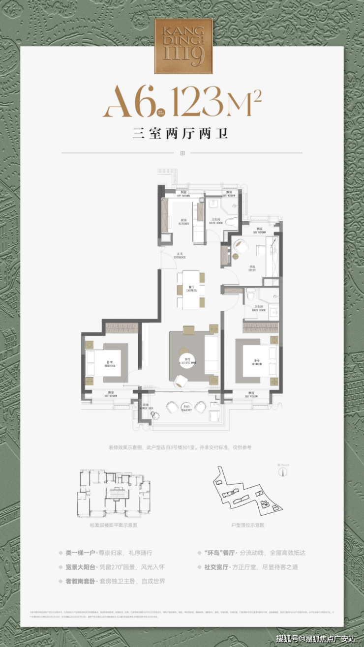 最重要的是,康定壹拾玖这建面约177㎡4房不仅仅是方正,更是飞机户型,三开间朝南+南北通透+无走道的浪费,整个户型相当正气。