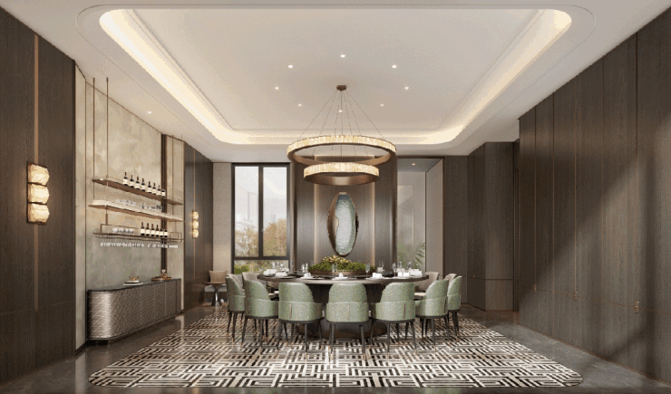 从质感不凡的高级石材到身姿卓越的名贵树种,从东方美学的空间调性到精致艺术的摆件挂画,无一不体现出项目的精工匠造和高级审美.