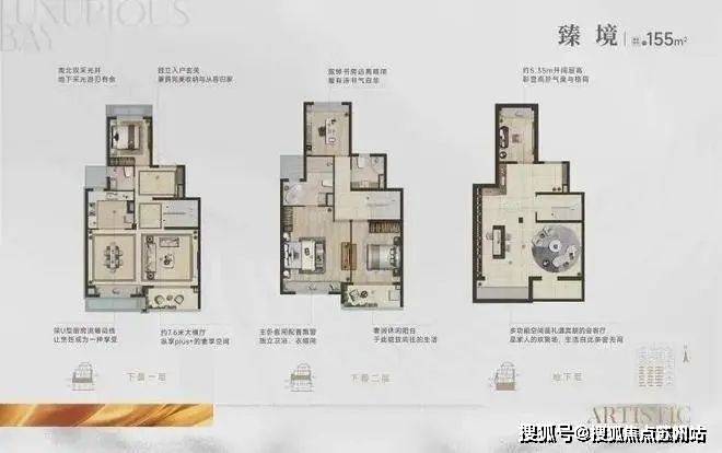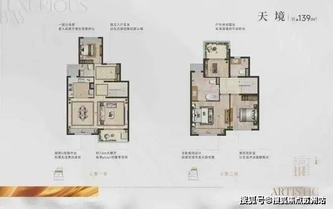 叠墅,上叠建面约139m²、下叠建面约155m²,具体到每一叠又各有韵味,向理想的惬意墅居生活致敬。