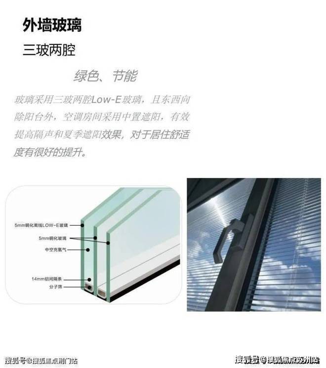 部分房源配置三玻两腔low-E玻璃+中置百叶,隔音隔热效果大升级