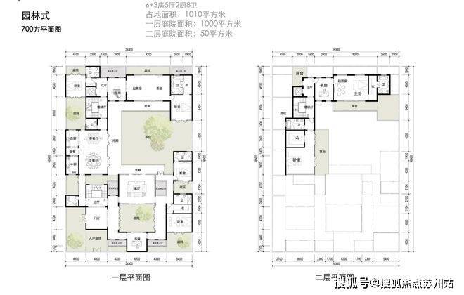 以335㎡及300㎡户型为主,顶层设置670㎡及600㎡户型。