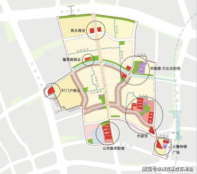 其中新增商业量为10543㎡,历史建筑活化为5900㎡,文保单位活化为5228㎡;具体分布如下: