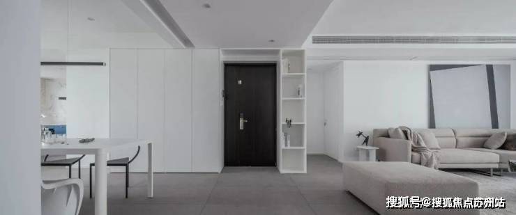 入户通过两侧增加收纳柜满足鞋子的收纳需求,定制柜的设计也有效避免了入户对室内空间的一览无余。