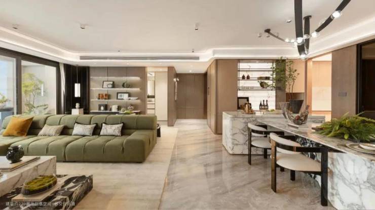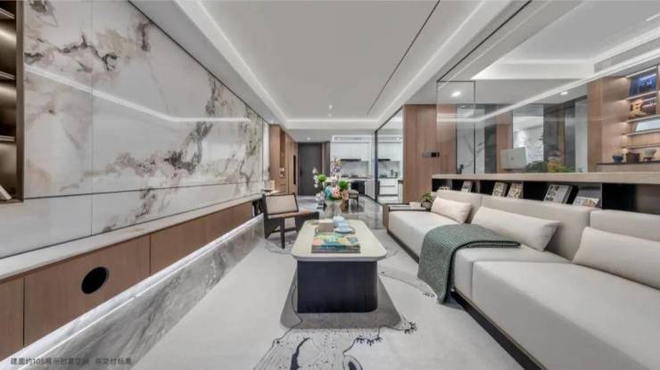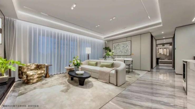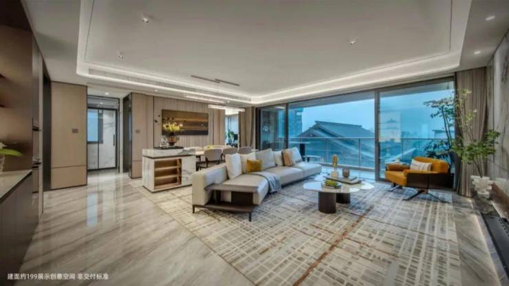 建发·云湖之城室内尺度进阶,打造了约19.9米南向面宽,带来了IMAX影院级巨幕效果,超级大平层视野宅家享受日光浴。整个空间LDKB一体化设计,将客厅、餐厅、厨房、阳台四个独立空间整合成多功能复合的“超大公区”,形成一个全景无界巨幕方厅。