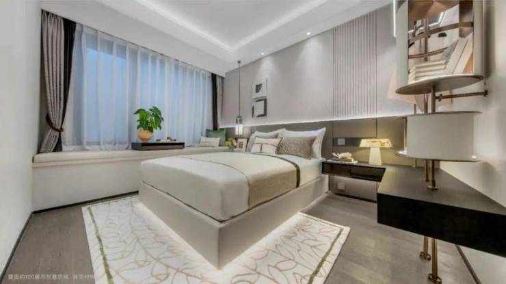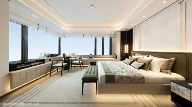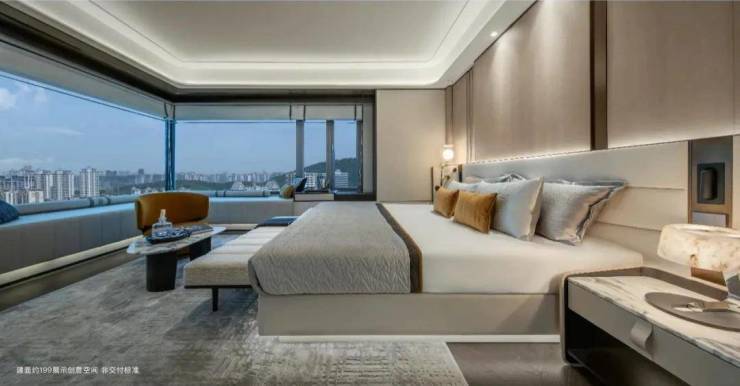 主卧“小家化”,面积达到了约50㎡(包含不计产权面积部分),以“总裁行政级套房”标准打造。270°超广角环景主卧+270°豪华风景卫浴间,与世界星级酒店生活保持同频。整个卧室如同一座空中庭院,全维采光通风。
