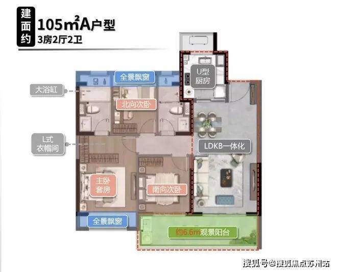 ·明 | 三开间朝南,开间进深约6:4黄金比例,360度全明视角