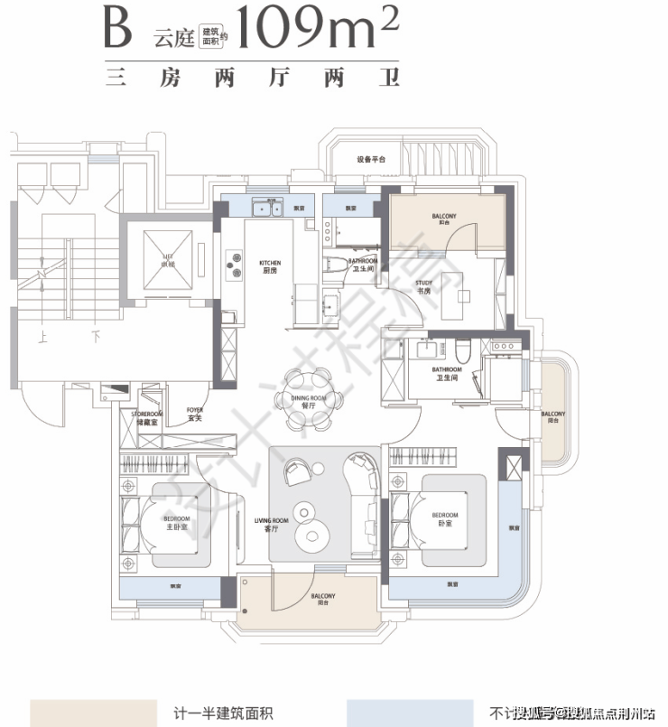 109㎡的三房边套户型: