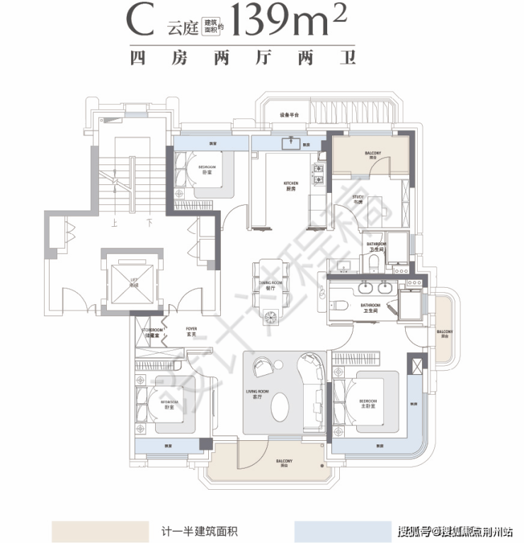 139㎡标准的四叶草四房户型: