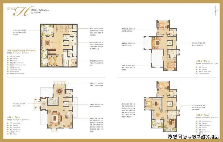 建面448-820㎡(地上3-4层+地下会馆),含4-7居室,全框架结构可自由改造