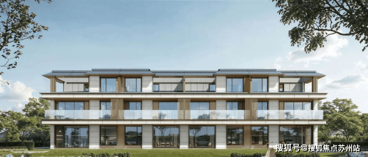 立面上采用中式现代简约风格,大面积玻璃幕墙搭配古铜镶边,将传统中式元素与现代建筑理念完美融合,形成独特的视觉效果。