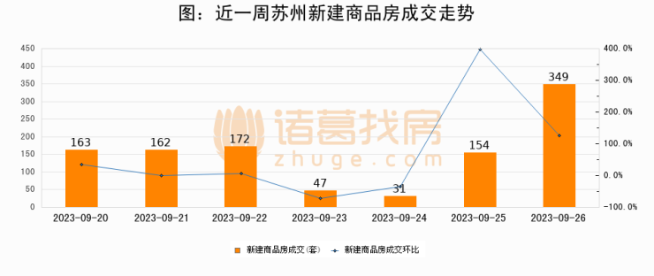 【苏州成交日报】09月26日新房成交349套、二手房290套;涨价房源316套