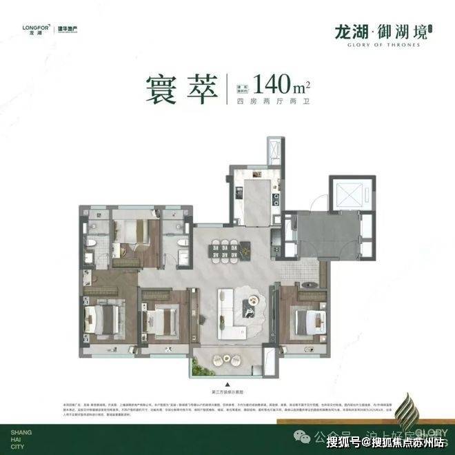 约140㎡超配四房洋房,奢阔双厅南北通透,还可改造成约8m巨幕宽厅,