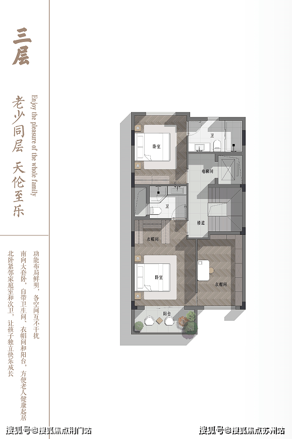 如果是三口之家,把一层的南向留给自己,另一层的同等空间就可以安排给孩子,给予孩子平权化的居住享受。同时,在这样的家庭结构之中,北侧的套房便可作为书房、客房、走入式衣橱等,大大提高了居住的实用性和舒适度。杭州金翊金云院售楼处电话☎:400-8228-664(售楼处预约看房热线)