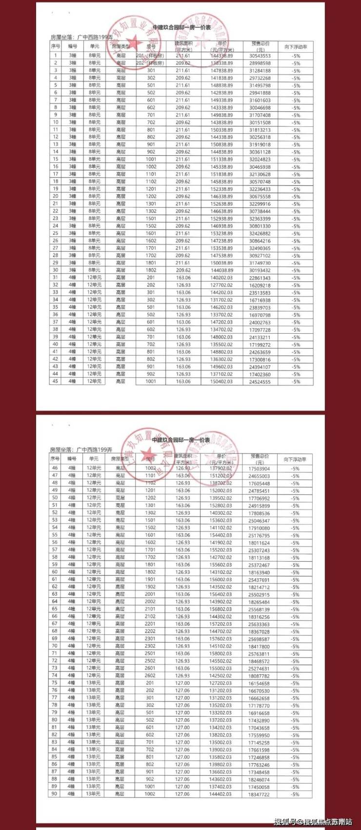 一房一价表如下: