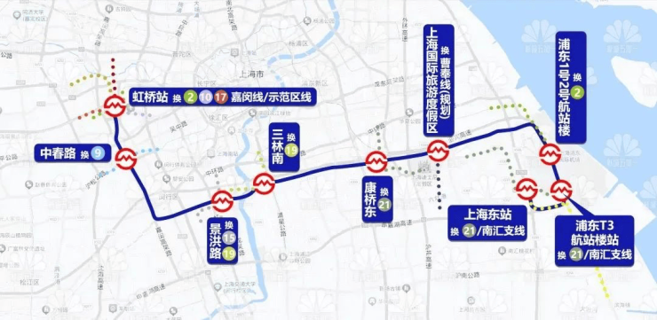 地铁21号线(在建中),进一步打通项目与张江的价值链条。 4站到达张江科学之门所在的学林路站 ,还 可换乘康桥东站与机场联络线 (已开通运营),可以覆盖张江各个重要产业园。 预计2026年年底实现通车运营,项目交房后就可以直接享受地铁通勤的便利!