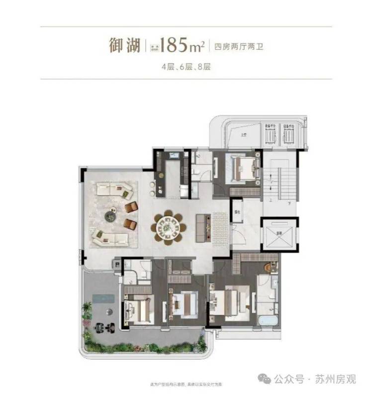 6栋洋房:创新错层露台,精装品质升级,打造约185-260㎡大平层。