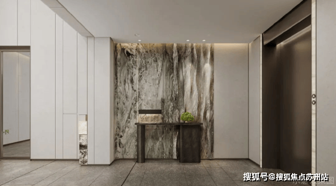 电梯厅采用了更为紧凑而精准的细节比例控制,确保空间的通透与流畅,不仅提升了空间的整体感,还营造出极具艺术造诣的雅致候梯空间。