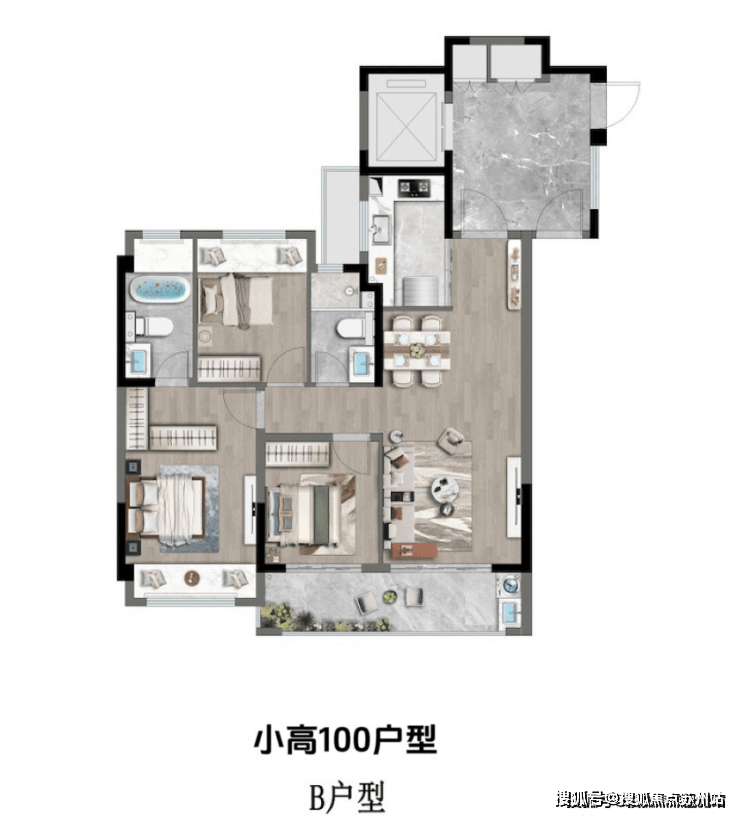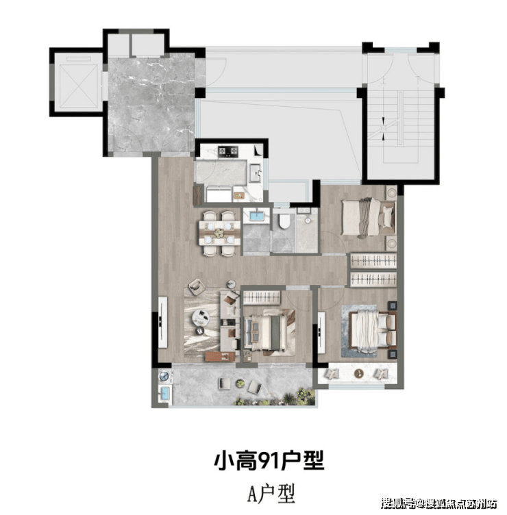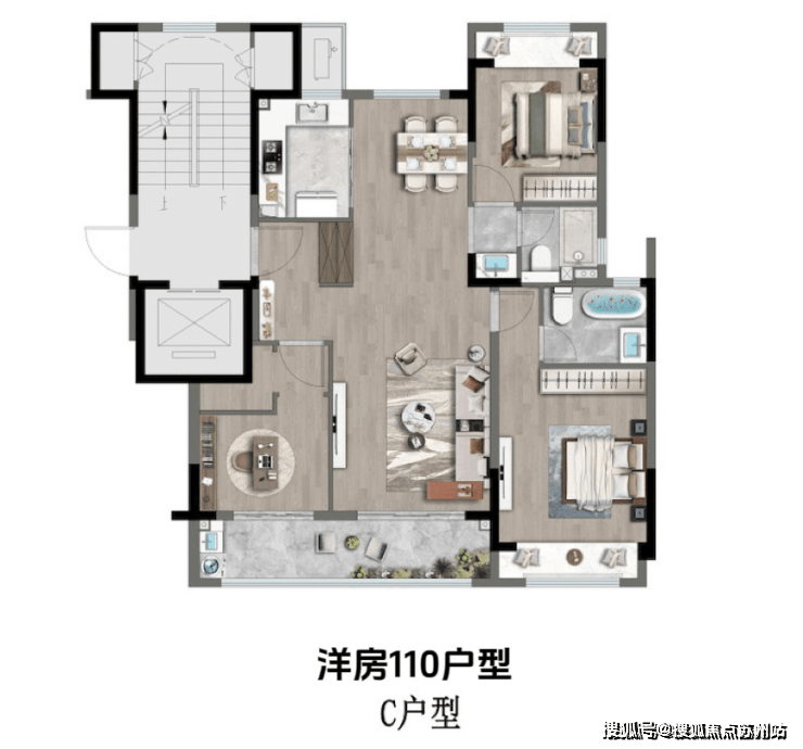 【户型】:91户型3房1卫、100户型3房2卫;110户型三房2卫