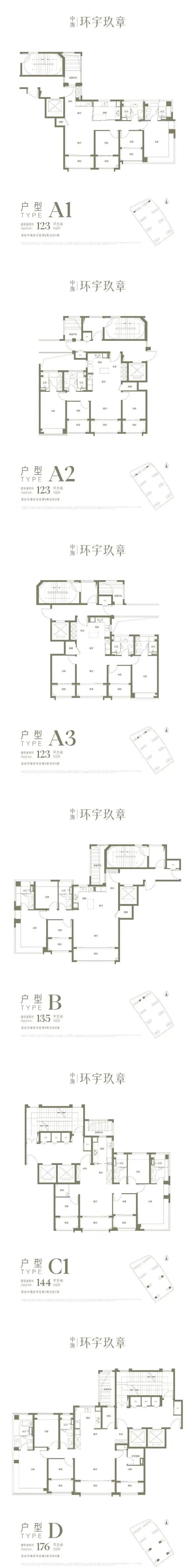 户型产品:主力约123-176㎡三至四房,利用多阳台、全飘窗设计,得房率高(部分超95%),户型亮点突出。