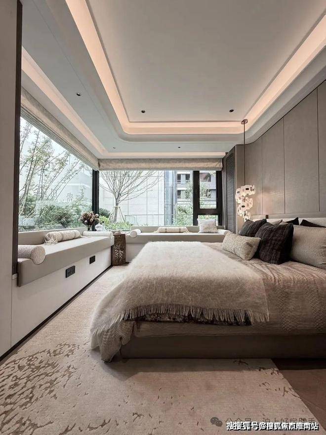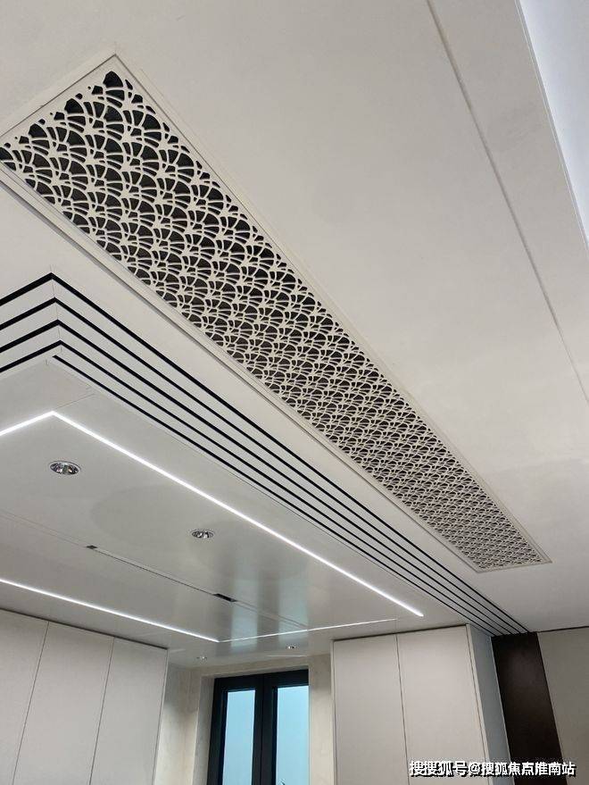 电视背景墙采用卡慕白的石材+皮革造型,弧形吊顶,相当讲究,连空调出风口的形状都打造为海上·清和玺logo山茶花的形状~~三大件为大金(或同等档次)中央空调和地暖,新风系统为百朗(或同等档次),南向阔景阳台,采光视野一级棒!