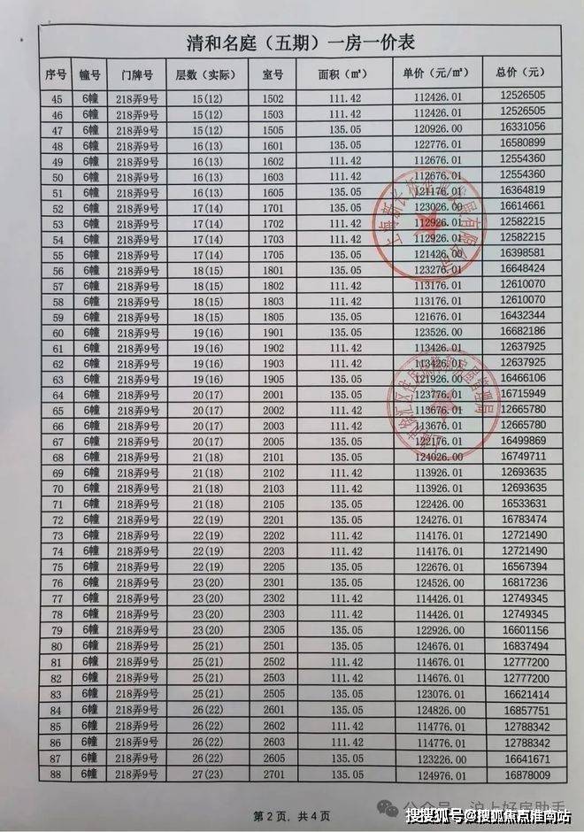 海上清和玺一房一价表