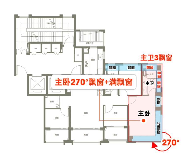 第四大亮点,全屋满飘窗设计,带来全景舱般的开阔视野!