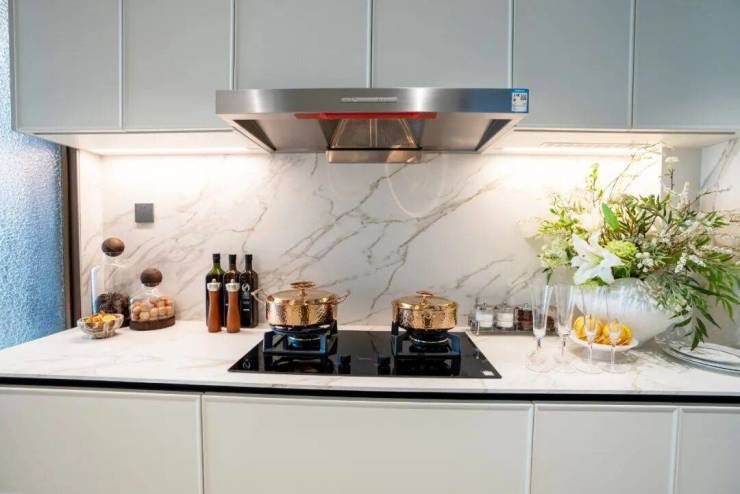 厨房间配置了美诺六件套、交付的岛台,当你每次在家下厨或聚餐,你一定会惊叹于这些家电和设计的实用性。
