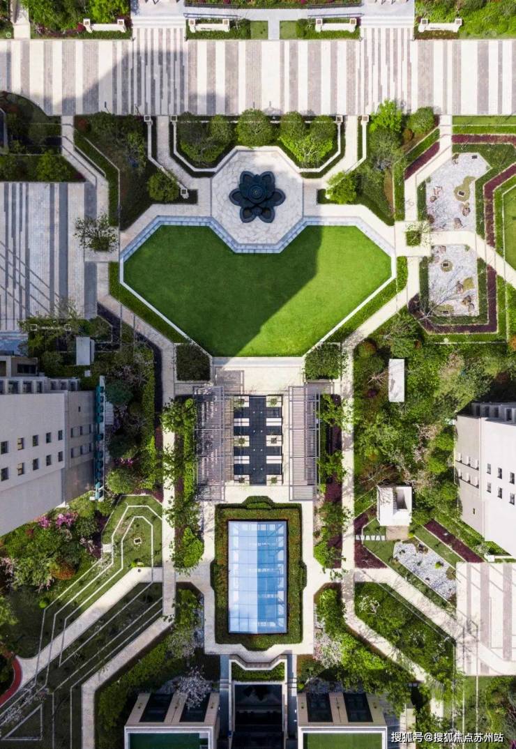 以十字景观中轴、五大宅间景观组团匠筑都会人居,结合广场、草坪、水景提供多样主题空间,为大都会高净值菁英家庭,营造理想生活社交平台。
