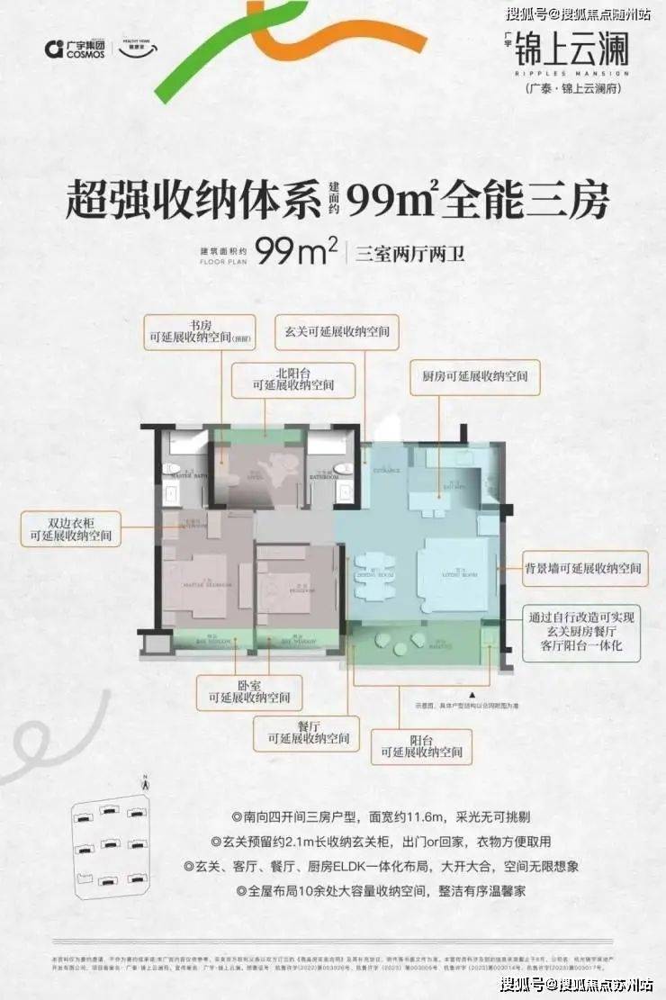 杭州锦上云澜售楼处电话☎:400-8828-814(售楼处预约看房热线)锦上云澜的户型同样非常出彩,建面约99-121㎡的舒适三房和四房,其中建面约99㎡的三房做出了4开间朝南的奢华尺度,南向开间约11.6米,双开间大阳台,餐厅、厨房、客厅和阳台的一体化设计,厨房可延伸收纳空间或岛台,这几乎是市场上舒适度最高的三房之一了。杭州锦上云澜售楼处电话☎:400-8828-814(售楼处预约看房热线)