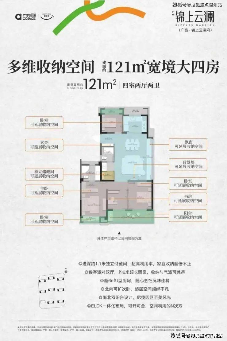 杭州锦上云澜售楼处电话☎:400-8828-814(售楼处预约看房热线)建面约121㎡的舒适四房,采用纵横空间设计手法,横向三开间朝南,主卧套房设计,次卧和书房外接双开间的超大阳台;纵向餐客厅一体连接约6米的超长飘窗及约6㎡的厨房,舒适度几乎可与市面上很多建面约139㎡的四房媲美。杭州锦上云澜售楼处电话☎:400-8828-814(售楼处预约看房热线)