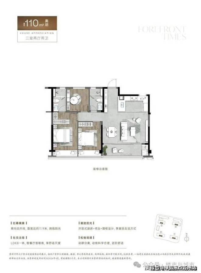 建面约110-137㎡精装空间,以大尺度、大面宽、多飘窗阳台等设计,延伸空间想象。