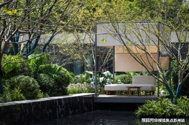 林荫逸步、微风草坪构建起两大舒展岛屿,随风舒展的阔叶植物、花期漫长的紫罗雪花,与高大冠树的林荫葱郁,形成两处无限接近自然的大地空间,无论是独处还是交谈,都会让人享受每一刻徜徉清风的度假心情,这也许才是设计的最大价值。