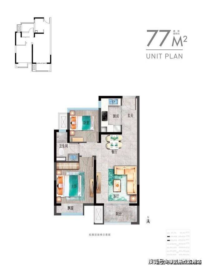 总价140万起、刚需首选、77㎡神户型、2室设计、动静分离、U型厨房、主卧有飘窗