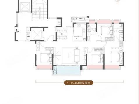 真正一步到位的改善型4房产品,大横厅的设计, 四开间朝南+大横厅,约15.4米的南向面宽堪比别墅。