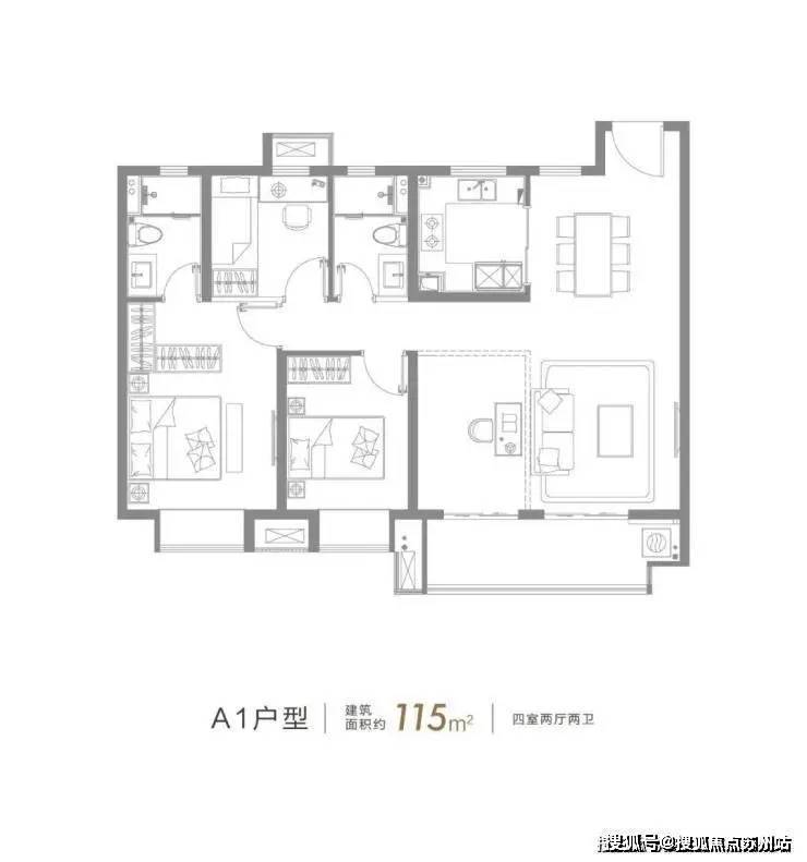 这个约115㎡的4房2厅2卫户型,是目前来看,临港改善户型中更具性价比的一个。