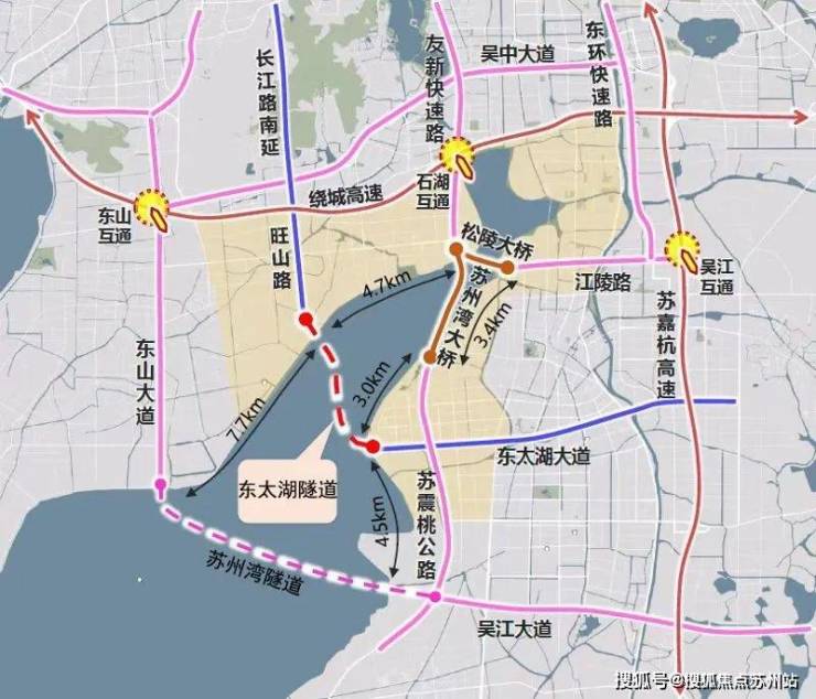 交通——多维立体路网交通配套,立体交通高架:西侧苏震桃公路,连接苏州湾大桥,接驳西环、南环,快速通达高新区、姑苏区、园区核心地段。隧道:苏州湾1、2号隧道(即将开建 ),将吴江和吴中串联起来,两岸湾区协同发展。加强太湖新城与汾湖高新区、上海虹桥枢纽的联系。 快速干线:项目5分钟车程直达江城大道和吴江大道,快速畅达吴江各大乡镇。