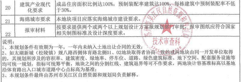 1、建筑密度≤30%,绿地率≥30%,建筑高度≤18m。2、建筑布局应注重城市天际轮廓线,并与周边环境协调,提升城市整体形成。3、绿色建筑要求:绿色建筑二星级及以上。4、成品住房面积比例100%,预制装配率建筑达100%,每栋建筑中的预制装配率≥30%。5、若2宗地块取得者协商一致的或2宗地块由同一开发企业取得的,其规划所涉及的容积率、建筑密度、绿地率、停车位、道路、绿色建筑标准、配套服务设施等均可统一规划,指标可统筹平衡。