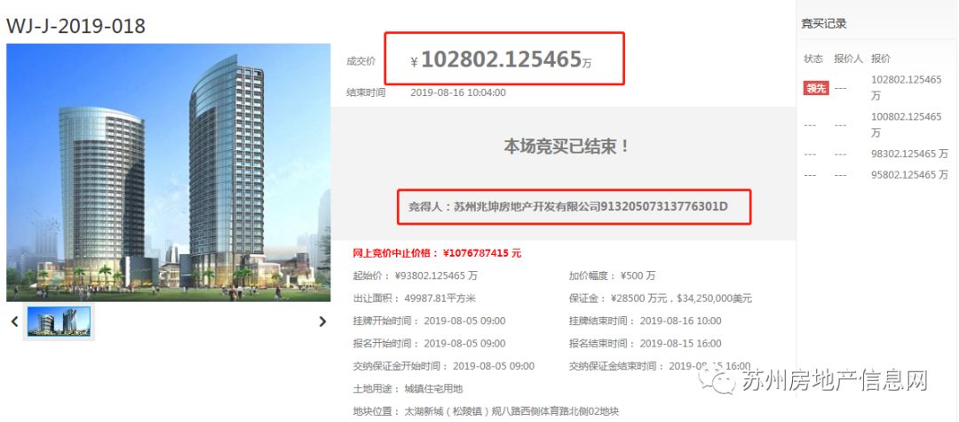 刚刚!吴江本月第二场土拍落幕2宗涉宅地块成功出让共揽金约18亿!