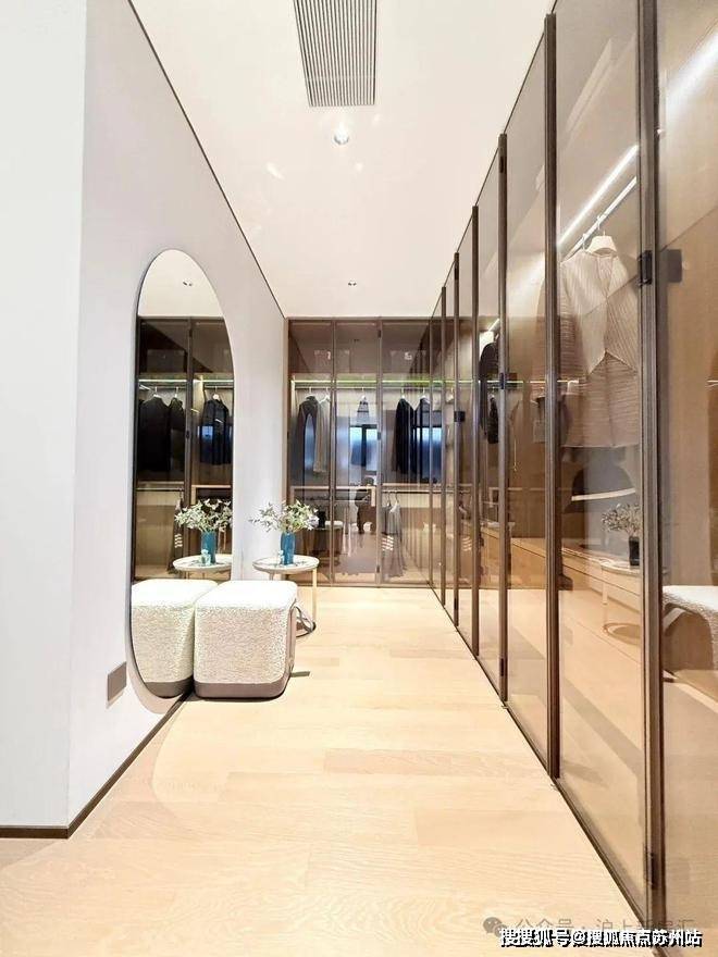 上海杨浦缦云上海售楼处电话☎:400-8123-664(预约看房热线)这个是入户玄关处的地面,大理石地面搭配金属线条勾勒出玄关地界,归家的氛围感从这个区域就开始了~这还不是重点,玄关座椅背后,是一面皮革包裹的墙面。鞋柜下方做了悬浮处理,同样也是内嵌灯带,这里灯光的角度还会再调整,因为灯光映射在大理石地面上,要显得尽量柔和不刺眼;同时,鞋柜下方可放拖鞋,还能放扫地机器人,便于日常清扫打理。鞋柜的饰面,纹路方向统一,呈现出极强的协调感。橱柜作为强功能性的收纳系统,自然少不了操作性能上的考究,吊柜做了升降式的拉篮,以后再也不用爬上高凳拿取了。下方的橱柜则做了转角拉篮,充分利用转角空间,使物品井然有序的同时,轻松方便取放。水槽也是一个大单槽,放得下炒锅汤锅这种大物件~抽拉式龙头,清洗大水槽的时候很方便,360度旋转伸展自如,这款弯管还是硅胶材质,柔软耐用有弹性,还可切换出水模式,出来的水柱也是很柔和细腻不飞溅。厨房玻璃门是上轨道移门,意味着地面部分没有任何轨道,不会有灰尘积攒,炒菜时关上,避免油烟散入室内;平时拉开,可以扩充室内视觉感受。卫浴缦云上海所有户型的所有卫生间里都用了悬浮式的洁具和柜体,确保了下方空间的打扫无死角,对未来的入住带来非常大的便利性!吉博力同层排水技术,静音是最大亮点;特制“水母”地漏,多重防臭防反溢。干净舒适的卫生间,是从空气到水流的全面把控~你们可以看下缦云上海是如何处理卫生间木门的防潮的——卫生间一侧用大理石做踢脚线,这是真正细致入微的巧思!主卧卫生间配备的电热毛巾架简直就是遇到潮冷节气的“福音”,让毛巾、内衣都能够提前加热干燥。层高对于缦云上海的纯大宅社区定位,能买这样产品的购房者会非常在意空间感。缦云上海全部户型层高约3.3米,室内所有空间的门都做了通顶设计,更阔绰的居室空间,将生活格局有效放大,通风、采光和观景体验的全方位提升!弧形元素缦云上海样板间里随处可见柔和的圆弧修饰,特别是柜体、墙体包边的圆弧转角,在进出各个空间时,减少磕碰的风险,对于有孩子和老人的家庭来说,是非常实用的友好设计。而且,门套做了弧形设计后,还叠加了金属线与墙纸做了分割,加强隔断界限感,提升室内家居精致度~比起中规中矩的直线,弧形施工工艺更复杂、造价更高,却多了几分灵动轻盈!这种弧形的元素不只是在样板间里,在售楼处也能经常看到,比如电梯厅。