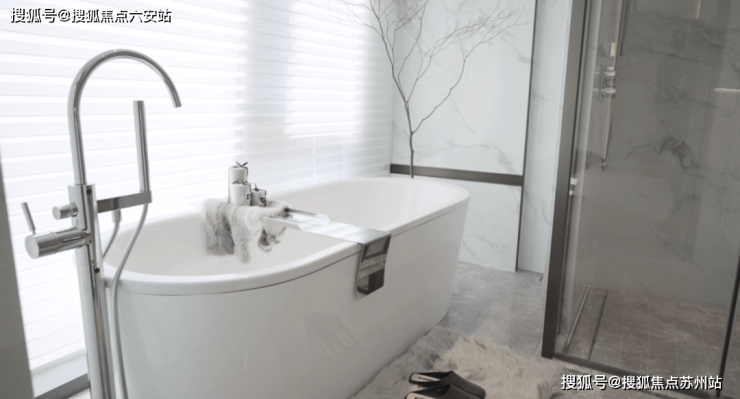 主卧套房设计奢华,浴缸、双台盆等顶级品牌联袂呈现。