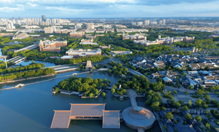 「国贸海上原墅」,因地制宜融入广富林文脉,塑造了全新的“新江南学院派”风格建筑。