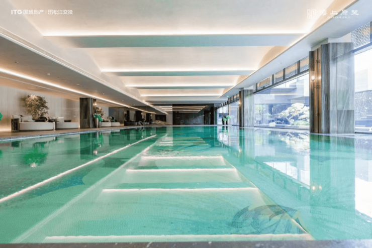 国贸海上原墅作为广富林溯源之作,打造诗意会所空间,包含泳池、咖啡厅、私宴厅、下沉庭院、健身房等功能。并且引入黑松、山石、景墙、草坪等人文自然资源,呈现一处充满国风艺术感的社交场!