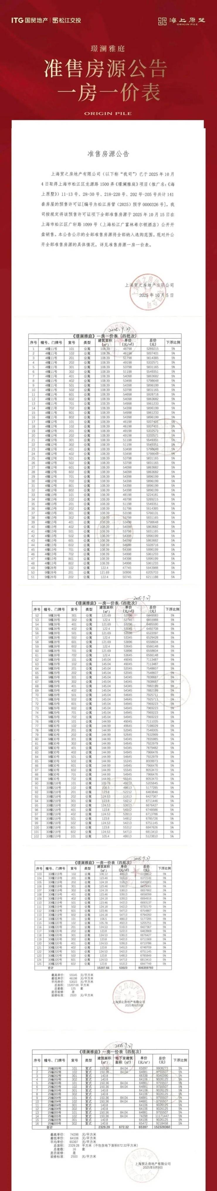 上期一房一价表: