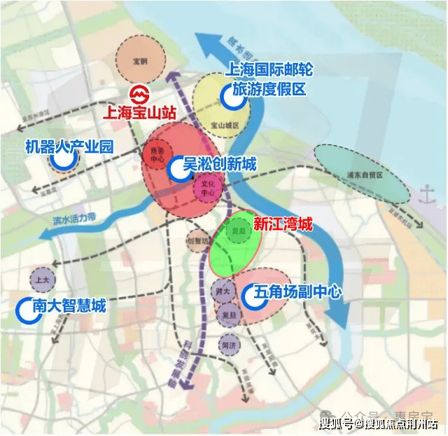 新江湾城的北翼,上海9大主城副中心之一的吴淞创新城,正在经历“北转型”科创产业大升级.新江湾城的南翼,另一个主城副中心江湾五角场,作为“金色中环发展带”,串起上海北部核心商务区,正从传统都市商圈向产学研复合城区变迁.